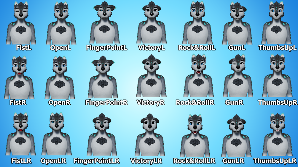- Expression Menu Toggles - Happy, Sad, WinkL, WinkR, Squint, ClosedEyes, Fear, and Blep